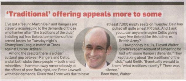 Graham Spiers – he even found a way to be offended by Rangers giving tickets to those defending the country from terrorism